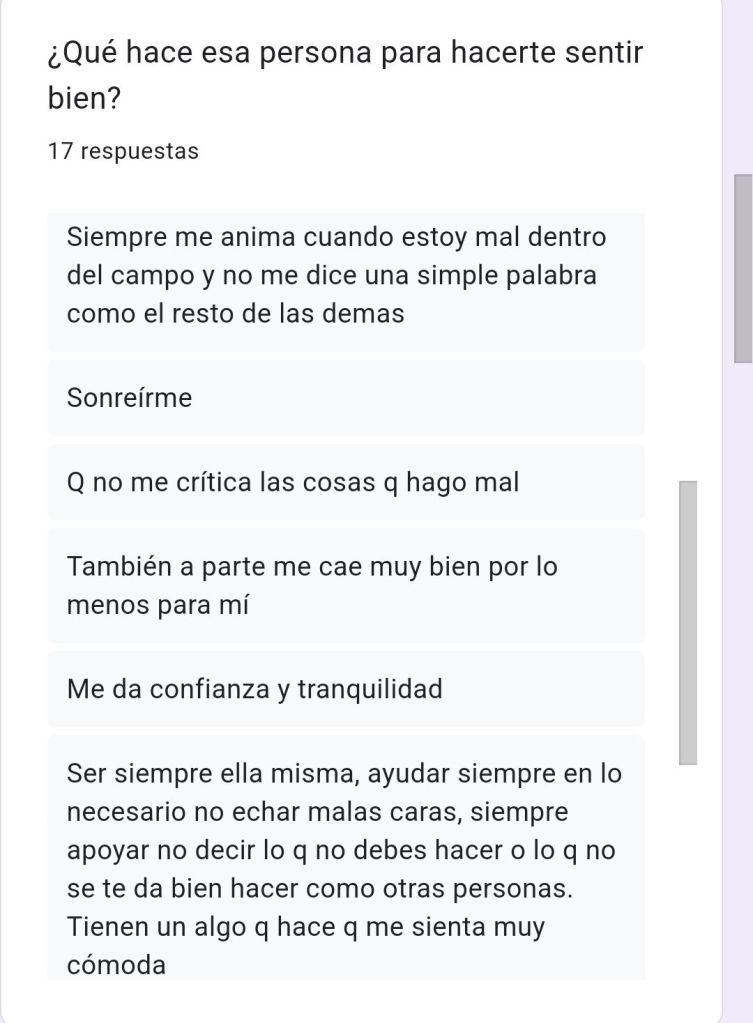 Para ello solo tiene que hacer esas cosas les hace sentir cómodas a sus compañeras, ya expuestas por ellas en el cuestionario.