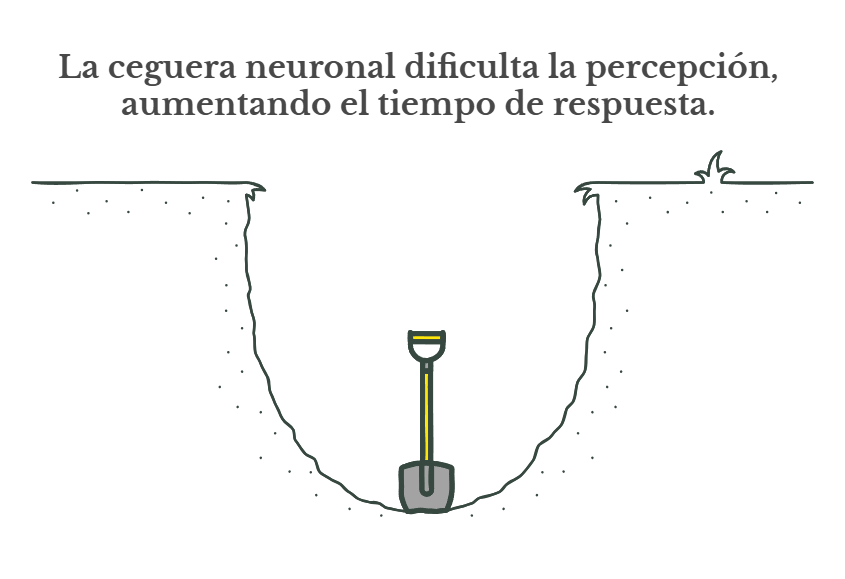 Y esto mismo es lo que ella llama ceguera neuronal, que hace referencia a la resistencia neuronal frente a un estímulo previo, que genera un estado en el que imposibilita al cerebro para procesar el estímulo siguiente por estar excesivamente involucrado en el procesamiento anterior.